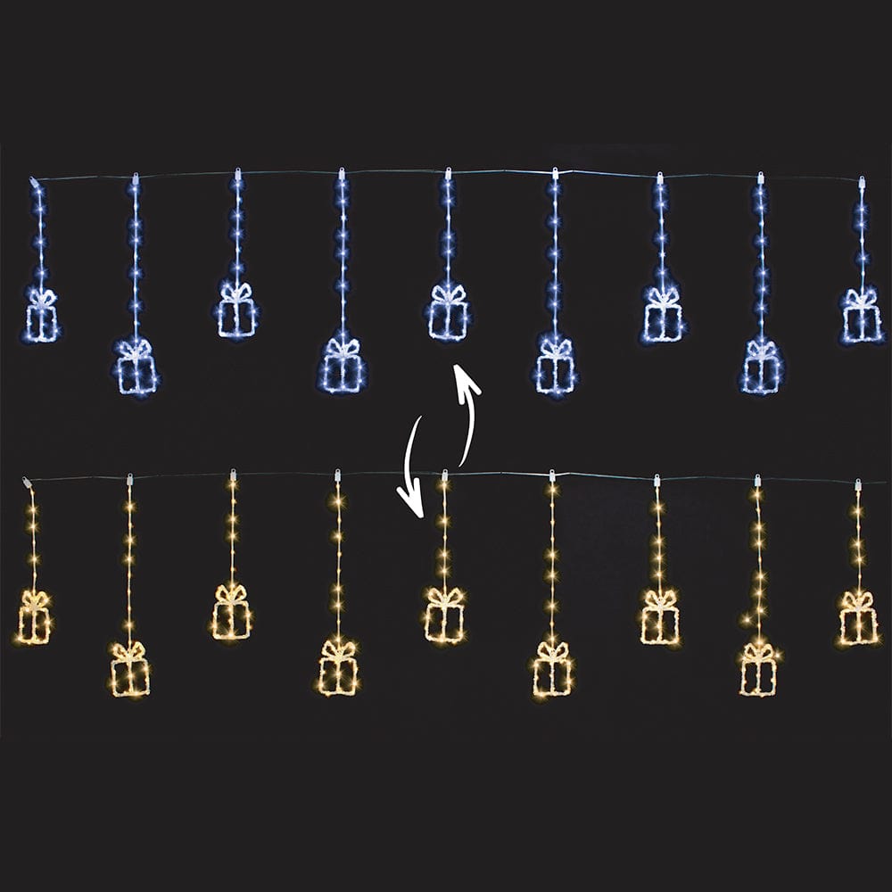 - Dual Colour LED Icicle Strands with Festive Presents on Each Drop
