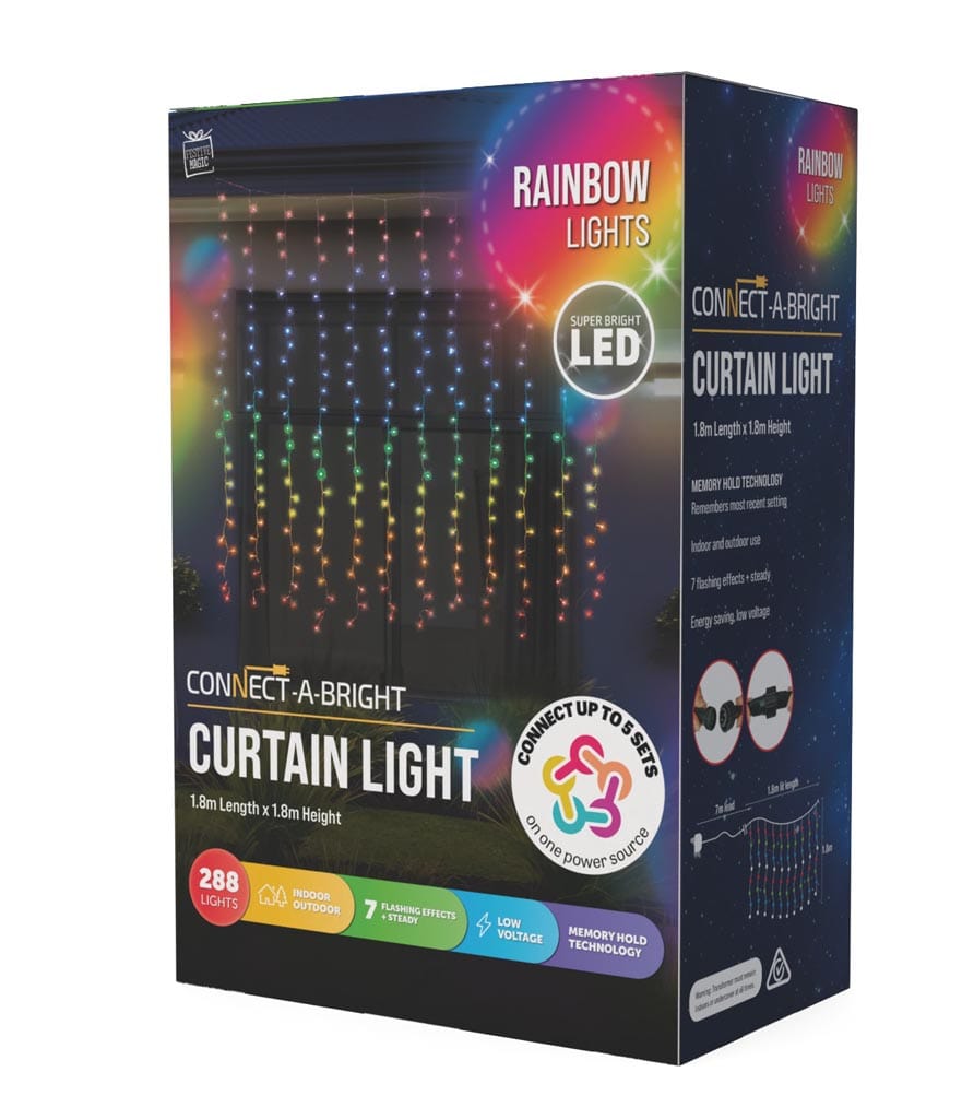 LED Flashing Rainbow Curtain Lights Connectable (1.8x1.8m) Sale