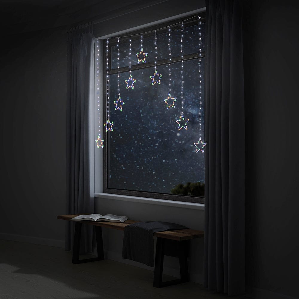 - 9 Curtain Strands of Bright LEDs with 9 Stars on Ends