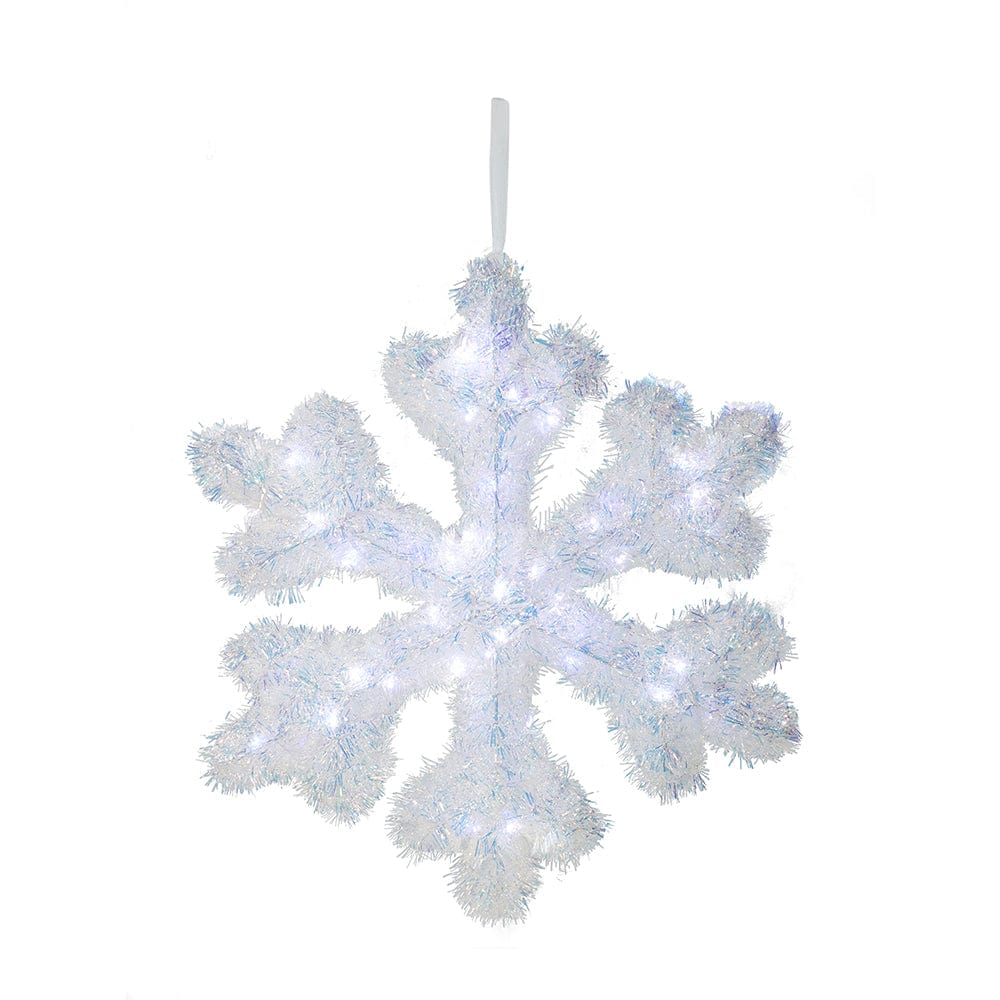 Transport yourself to a winter wonderland with our LED Tinsel Iridescent Snowflake. Reminiscent of glistening snowflakes falling, this stunning decoration will have you dreaming of a magical Christmas season.