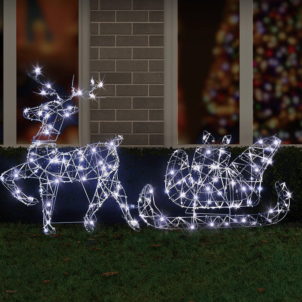 - Sleight: 39cm (Height) x 60cm (Width) / Reindeer: 72cm (Height) x 53cm (Width) 5m Lead Cable