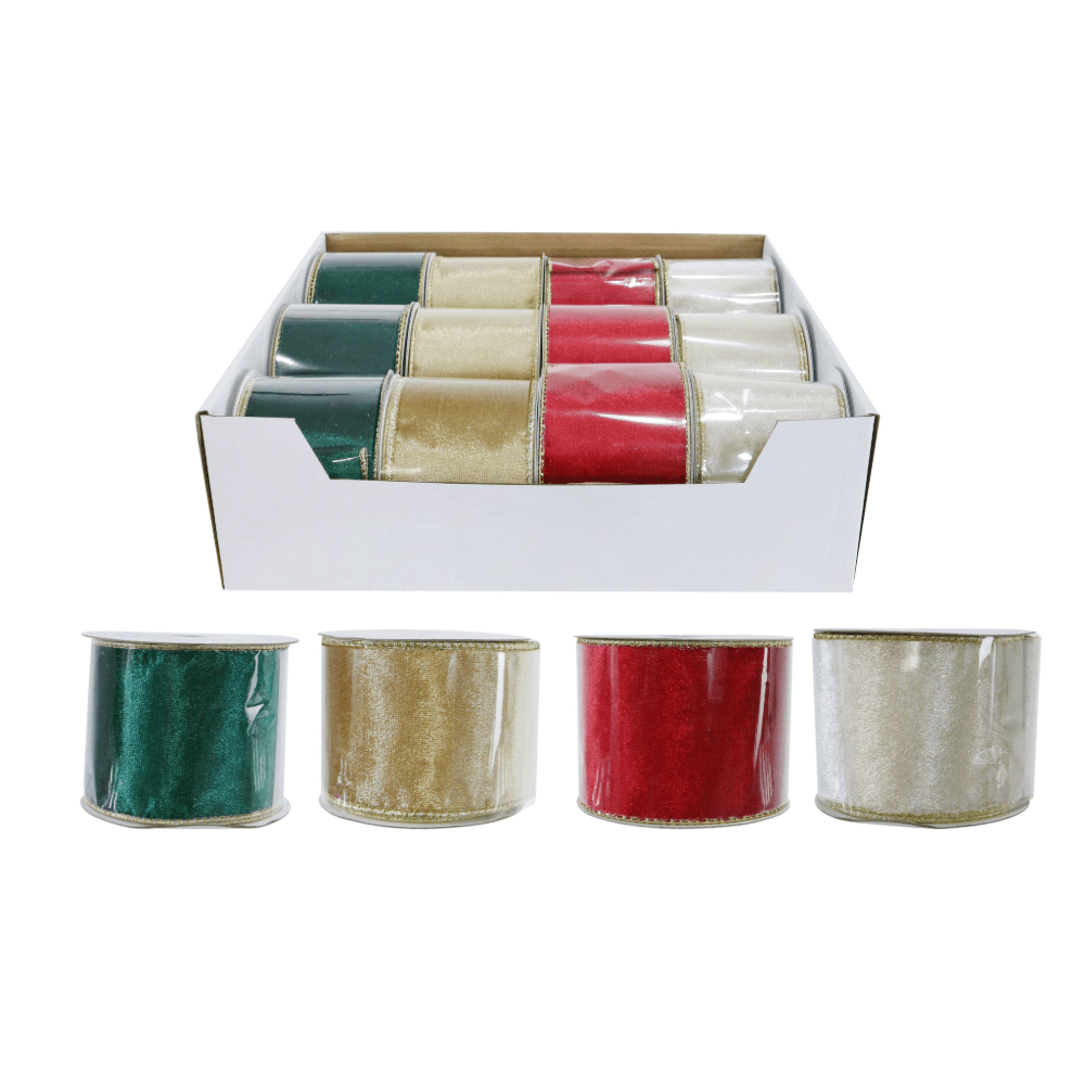 Enhance your gifts, crafts, and decorations with our luxurious Velveteen Gold Edge Ribbon Assortment.