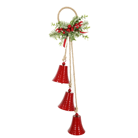 - Metal Bells On a Jute Covered Ring, with Pine, Berry and Ribbon Accents