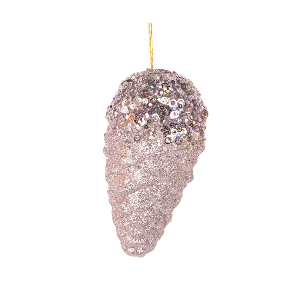 - Pinecone Shaped Polyfoam with Shimmering Glitter and Sequin Finish