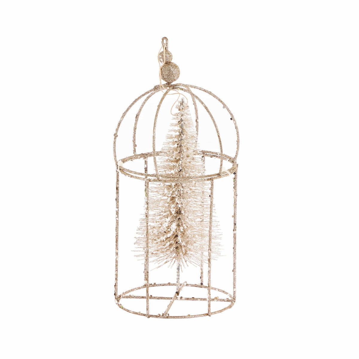 - Gold Metal Cage with a Glitter Finish, Glitter Pine Tree