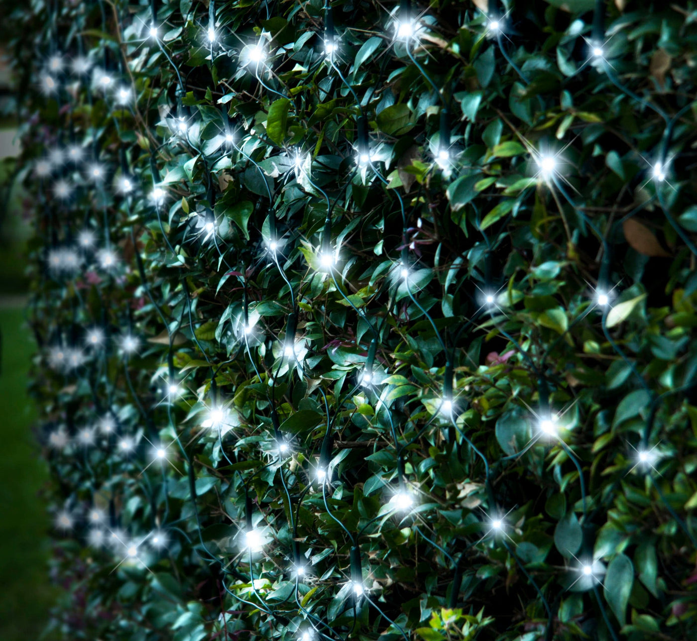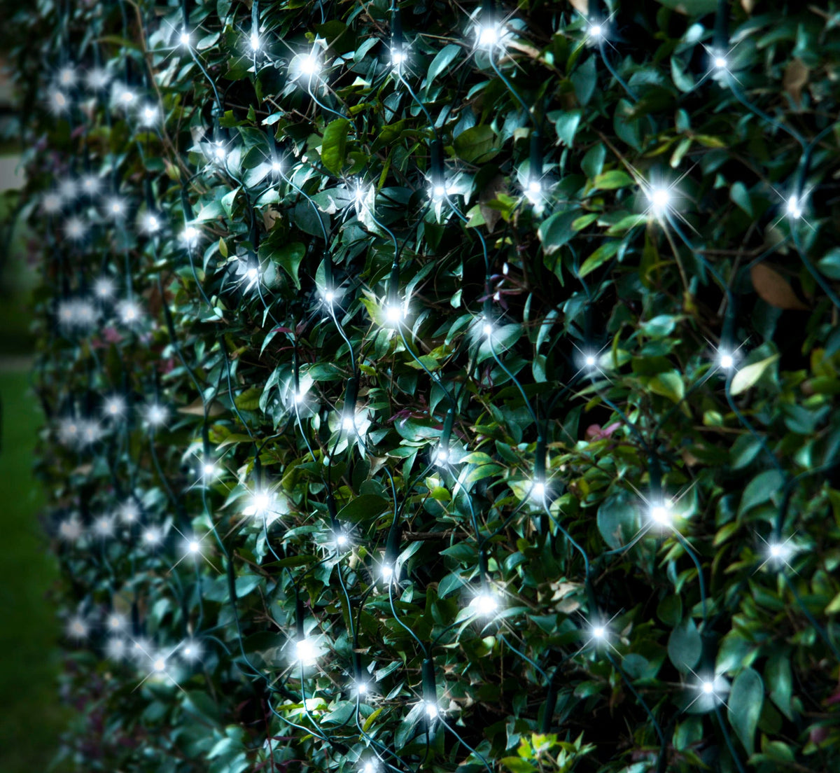 Net Lights are the perfect solution to cover a large surface with Fairy Lights. They will efficiently cover an area and create exquisite effects. These lights create decorative illumination to shrubs, trees, bushes, your roof or walls. A simple and quick process with maximum lighting results. Create a stunning backdrop at parties or Weddings or brighten up any outdoor area, year-round.