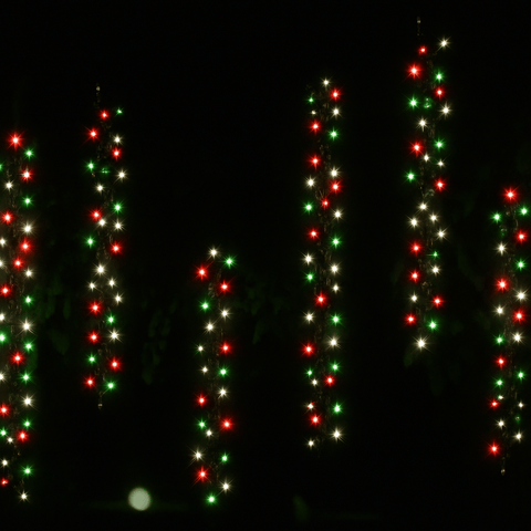 These Solar LED Icicle Cluster Lights deliver stunning red-white-green illumination, creating a dazzling visual effect.