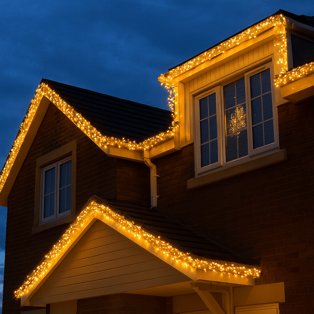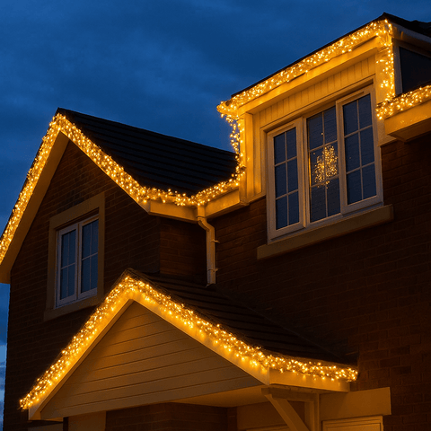 Perfect for enhancing your Christmas tree or adding a festive touch to your home or business facade, these lights create timeless memories with their radiant glow. Versatile in their use, they can be draped along eaves, wrapped around balustrades, threaded through hedges and trees, or woven into your Christmas tree for a fuller, more vibrant effect. Create a stunning, magical display that brings warmth and charm to every corner.