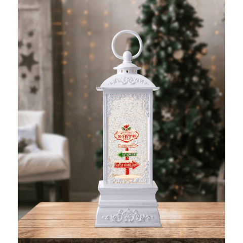 Immerse yourself in the magic of a white Christmas with our Glitter Swirl Musical White Lantern This enchanting lantern offers a feast for your senses, combining a captivating sight and delightful melodies.