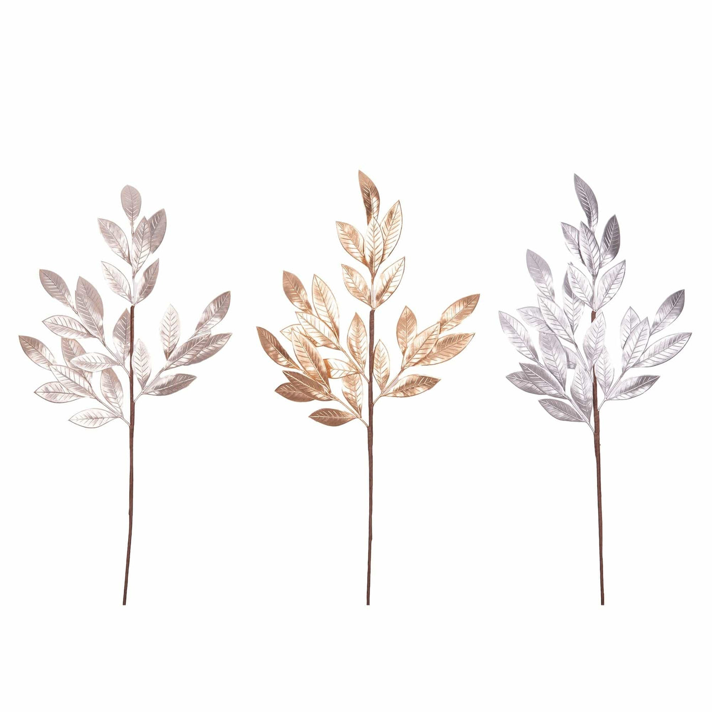 - Natural Stem with Stunning Metalic Finish Textured Leaves
