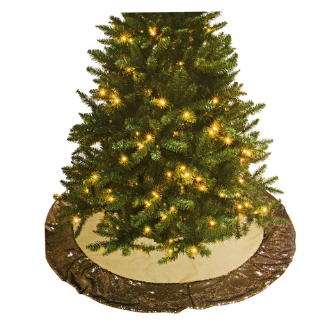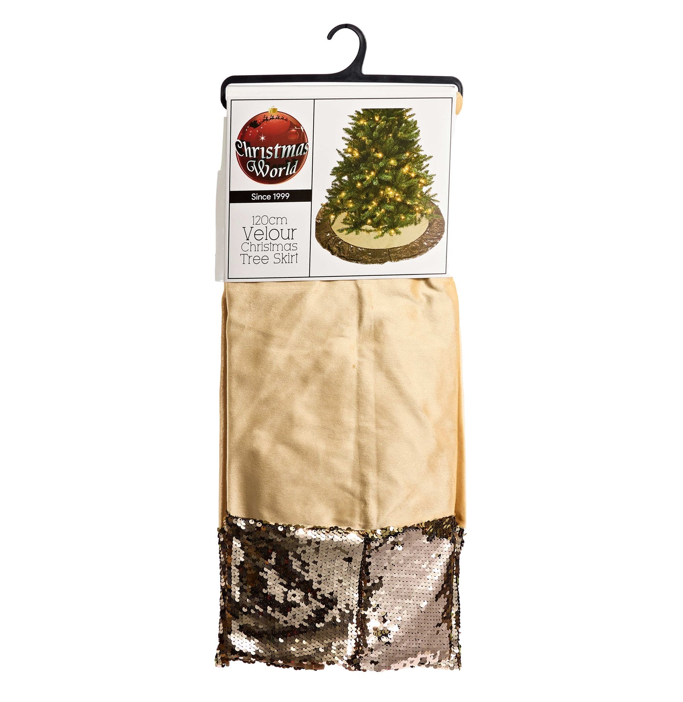 Dress your tree to impress this Christmas. Add a luxe look with the Gold Velour and Sequin Tree Skirt.