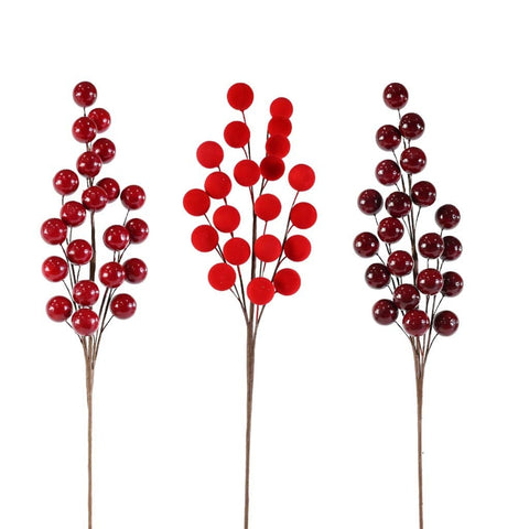 - Polymer Berries with a Gloss Finish Bunched on Natural Stems