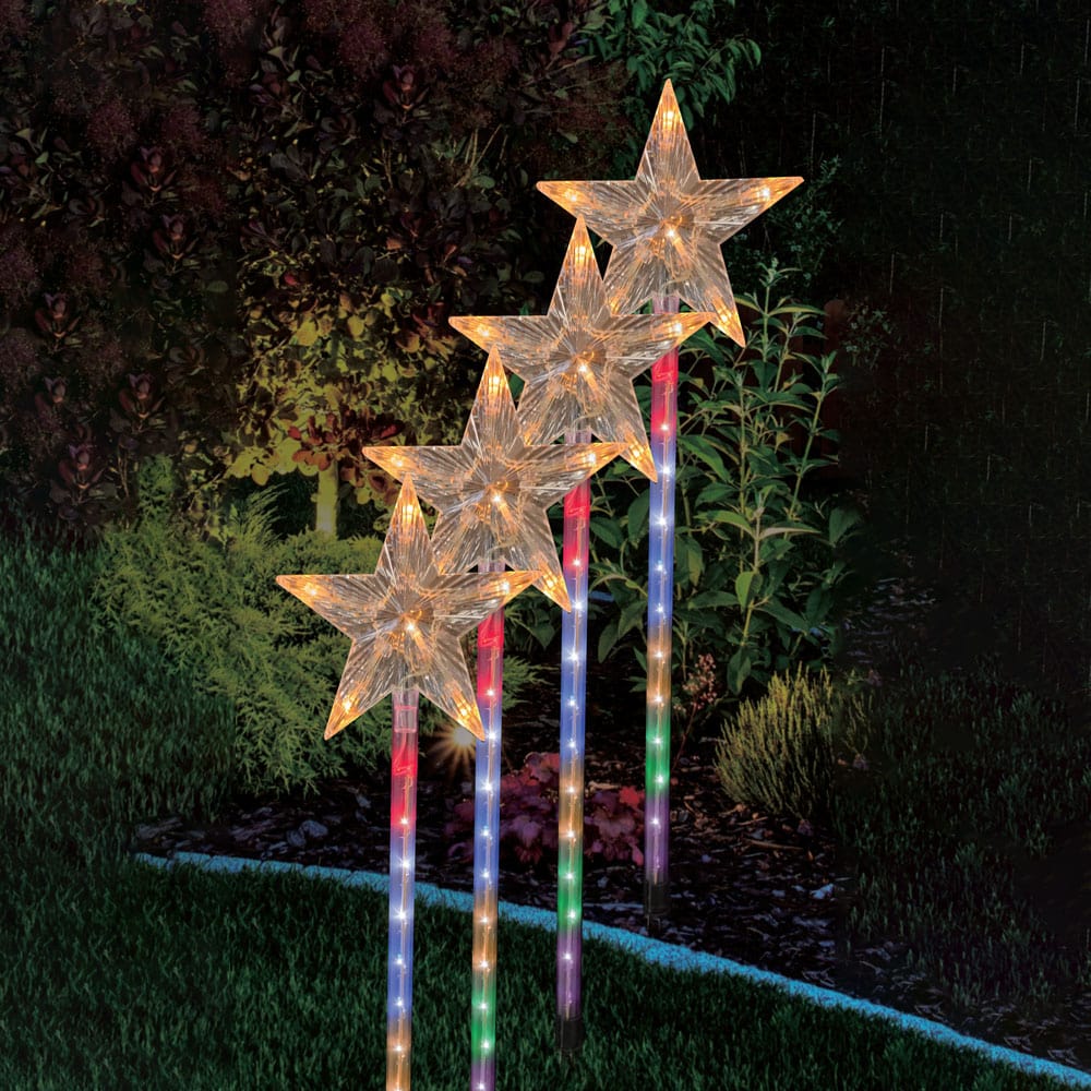 Illuminate your outdoor space with the LED Multi Shooting Star Path Lights. This set of four lights brings a touch of magic to your garden, walkway, or driveway.