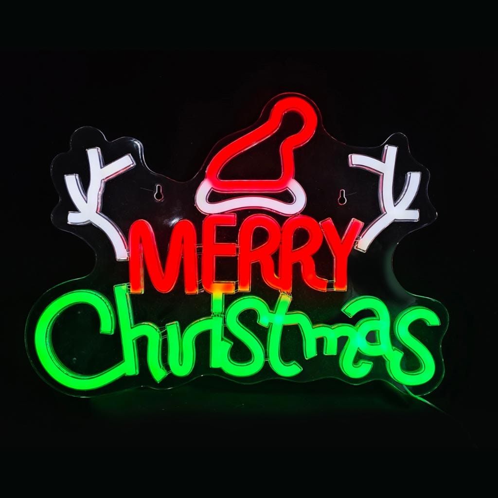 Add a fun and festive glow to your celebrations with this eye-catching sign, featuring a cheerful "Merry Christmas" design topped with playful antlers.