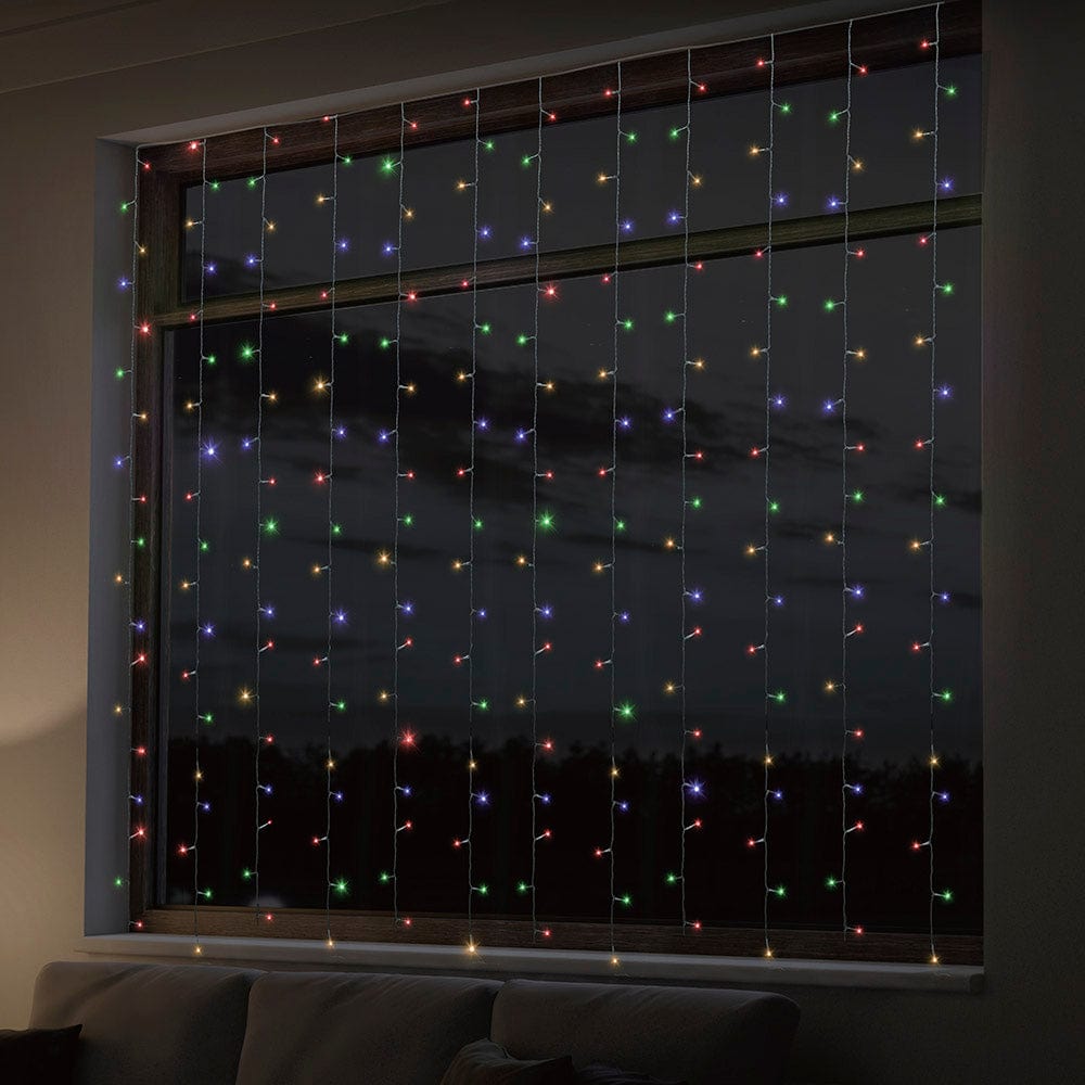 These Curtain Lights create a spectacular feature hung against walls, balconies and draped over entrance ways. Great to string from roofs, guttering and trees. They also look stunning when hung in a window.