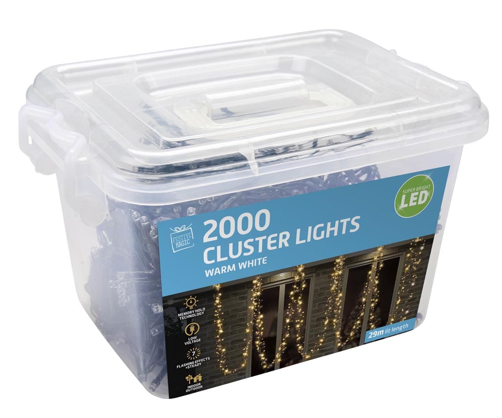Offering 4 times as many Lights, the Cluster is gathered together creating a luminous effect of Light that crawls around your Christmas displays. Perfect to display on the exterior of your home or business in trees or gardens or over balconies. Inside they are great through your Christmas tree, on windows, walls and mantel's.