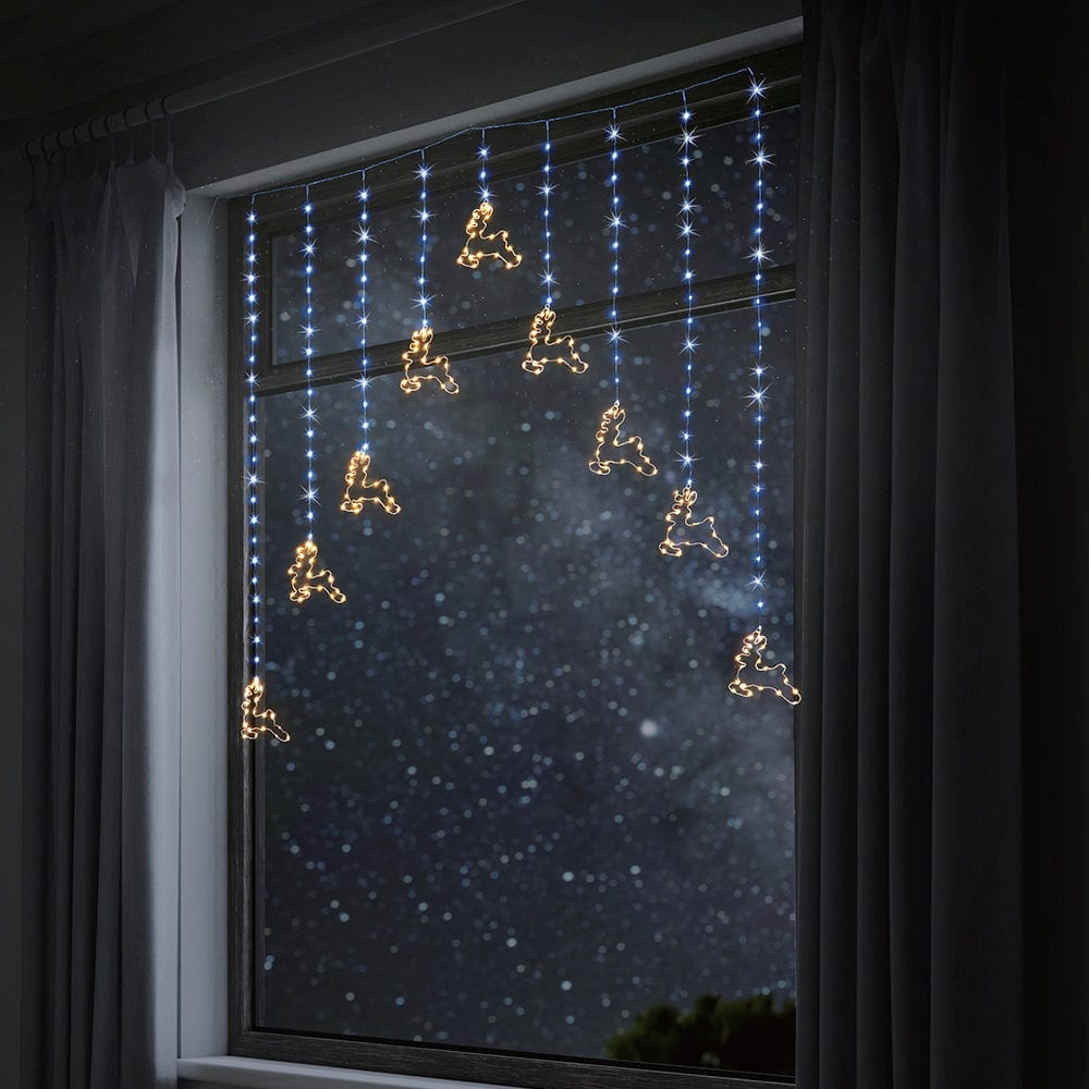 These Curtain Lights create a spectacular feature hung against walls, balconies and draped over entrance ways. Great to string from roofs, guttering and trees. They also look stunning when hung in a window.