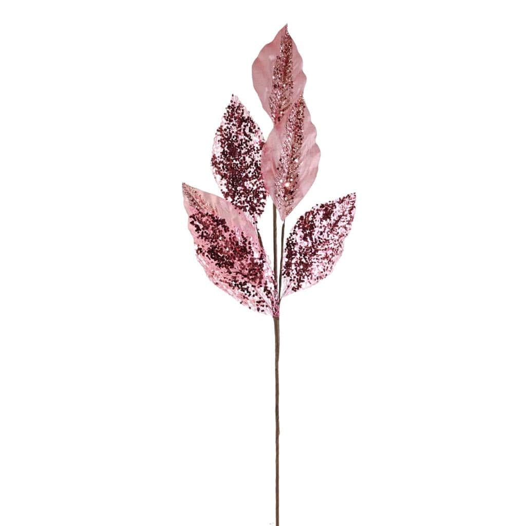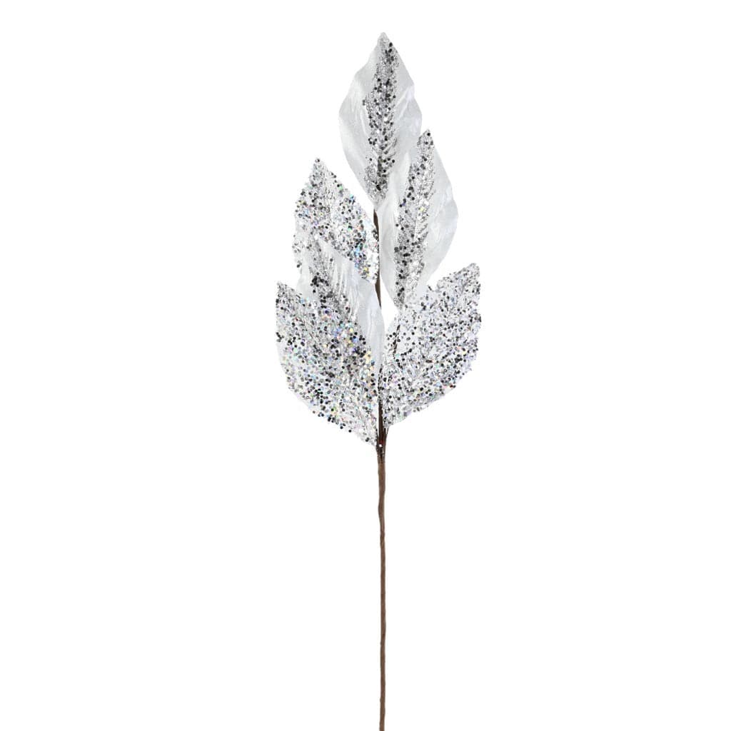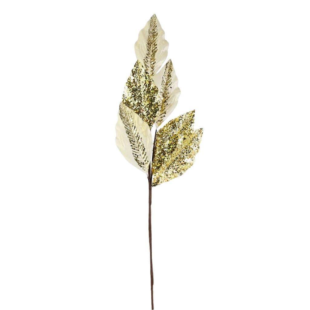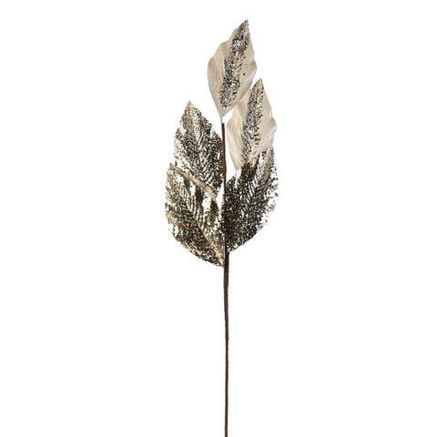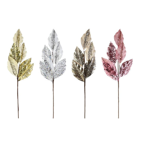 - Natural Stem with Metallic Leaves with Heavy Glitter Accents