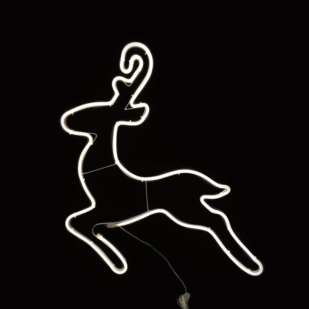 Light up your windows, walls, gardens or doors with this eye- catching Reindeer. Offering bright White Neon LED's, it's the perfect lighting piece to illuminate your Christmas display.