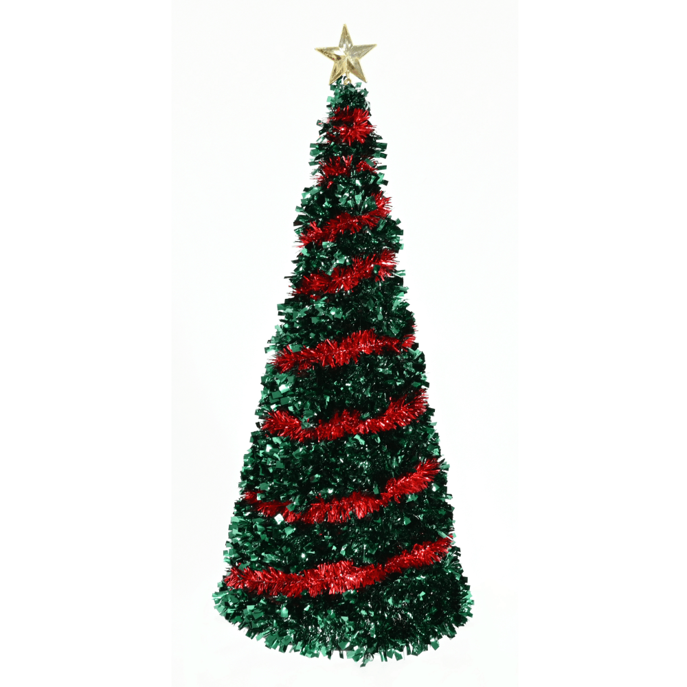 - Crafted From Fine Cut Tinsel in Red and Green with Polymer Star