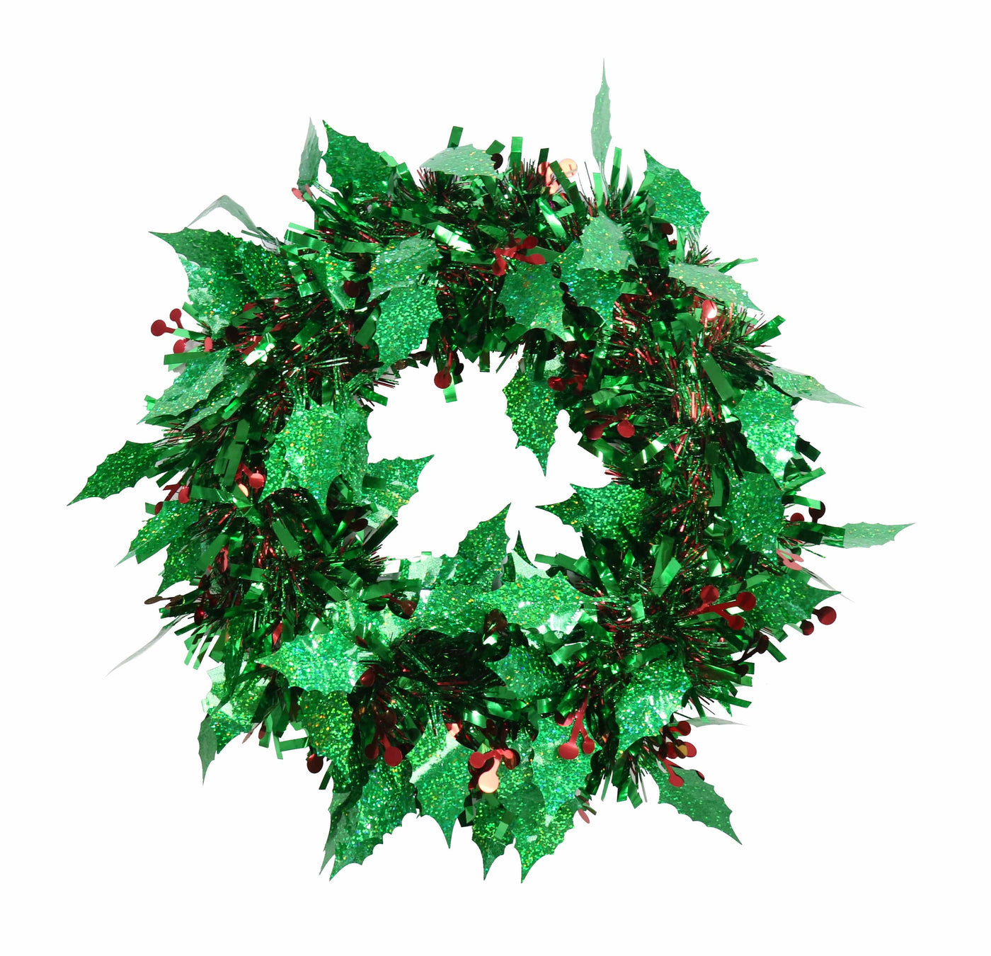 The Tinsel Holly Berry Wreath is a traditional Christmas theme decoration, with metallic green and red, it is ideal to place on trees, doors and walls.
