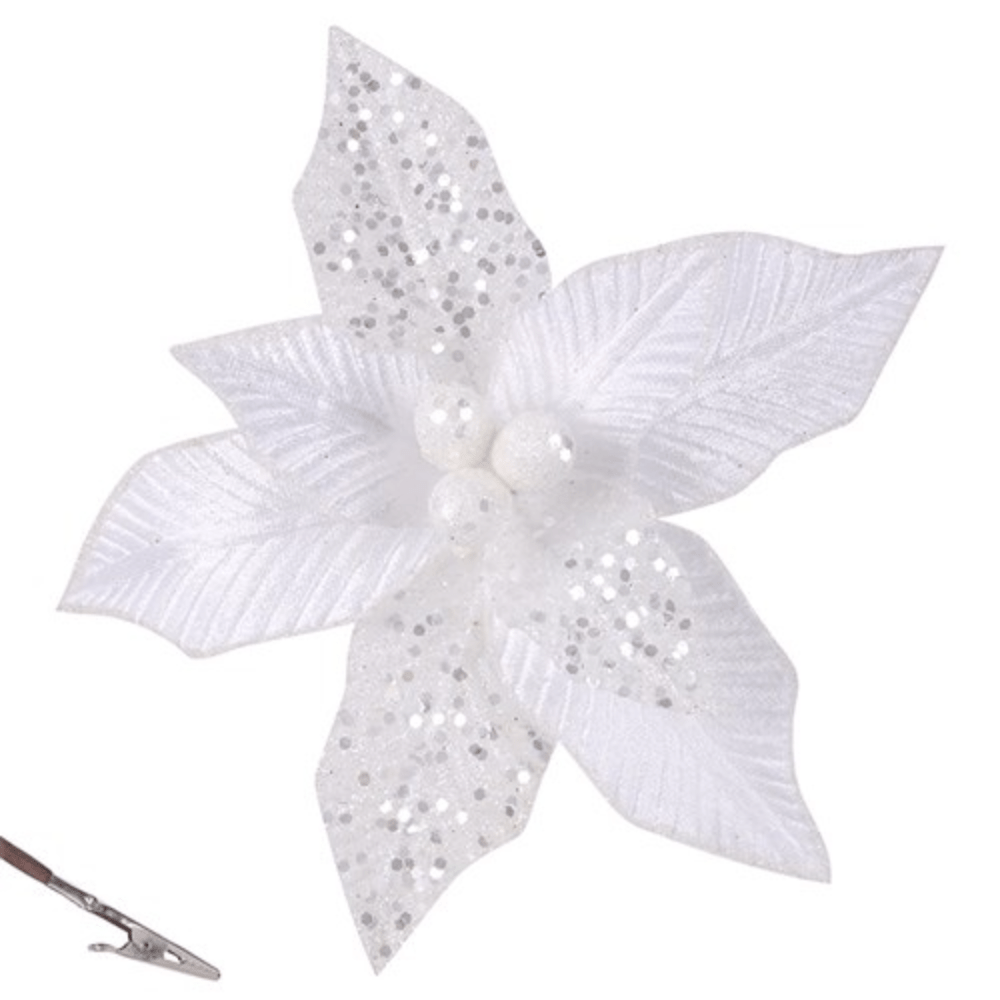 Unleash your creativity with this versatile Clip on Decoration and bring your unique style to life. Mix and match it with other floral arrangements, ribbons, and greenery, or simply attached to various surfaces, gift wraps, headbands to create personalized decorations that perfectly suit your style. Whether adorning Christmas trees, wreaths, garlands, or table centrepieces, this flower's adaptability adds a touch of charm to any setting.
