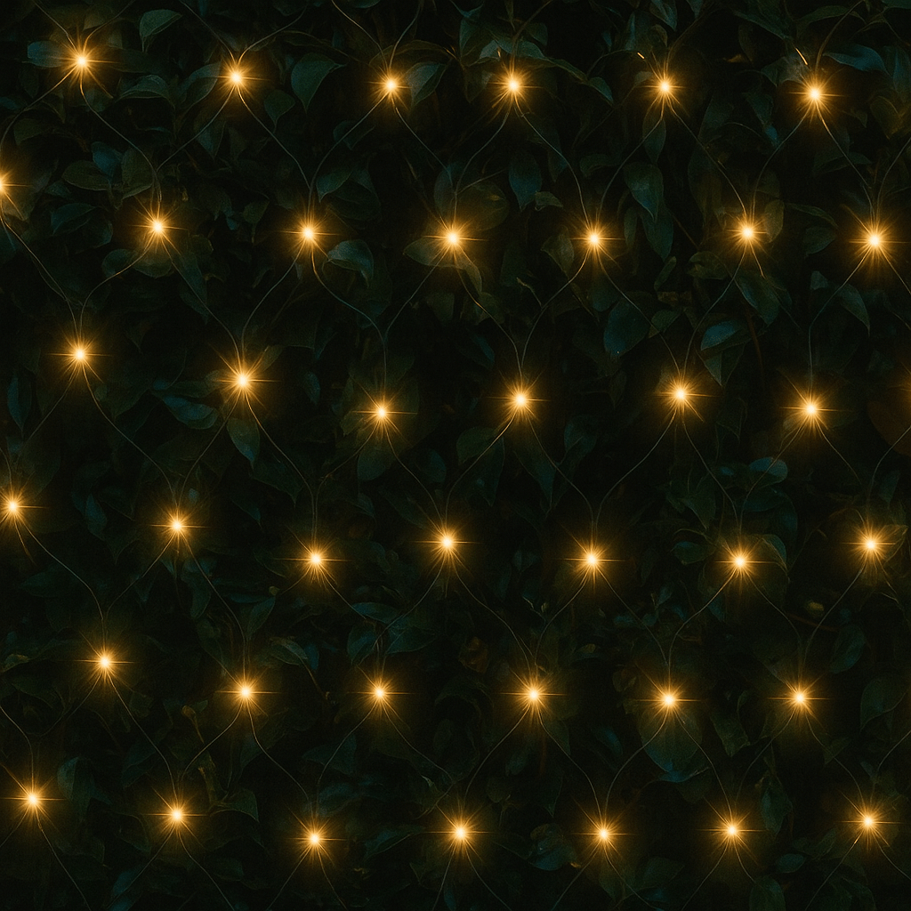 Add timeless elegance to your outdoor spaces with these Vintage Gold Solar Net Lights. Featuring a warm golden glow, they create a beautifully inviting and festive atmosphere perfect for the holiday season or any special occasion. Designed to cover a large area with ease, these energy-efficient lights are ideal for decorating hedges, fences, or garden walls. The 8 function memory controller allows you to choose between steady and flashing effects, bringing your display to life as night falls. Powered by the sun, they automatically light up at dusk—no messy wiring or electricity costs required.