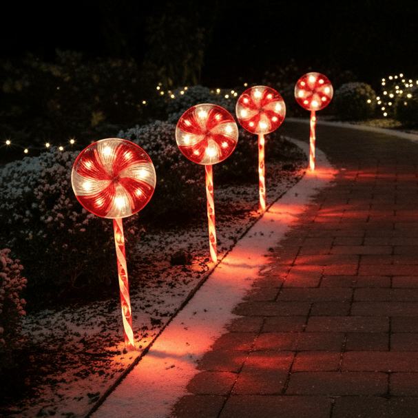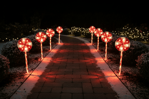 Transform your space with a burst of festive cheer using our Jumbo Flashing Lollipop Path Lights.