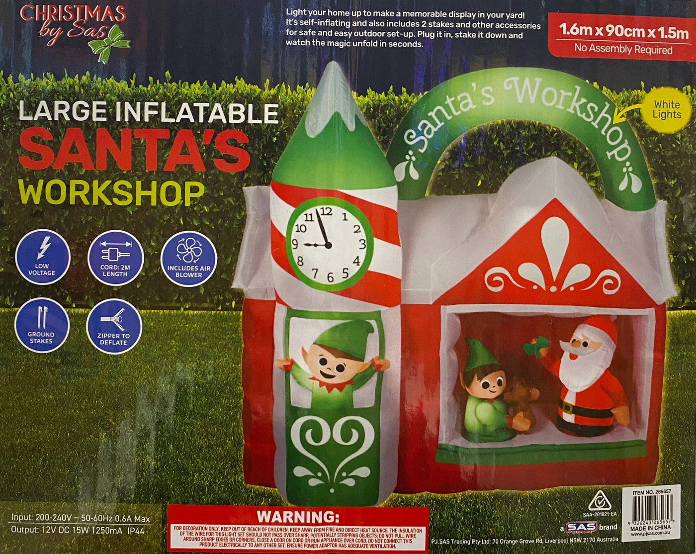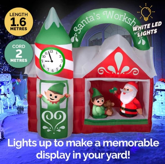 Take a look into a day in the life of a Santa! This legendary workshop, where Santa Claus and his Elves make Christmas Presents will be an eye-catching addition to your Inflatable collection.