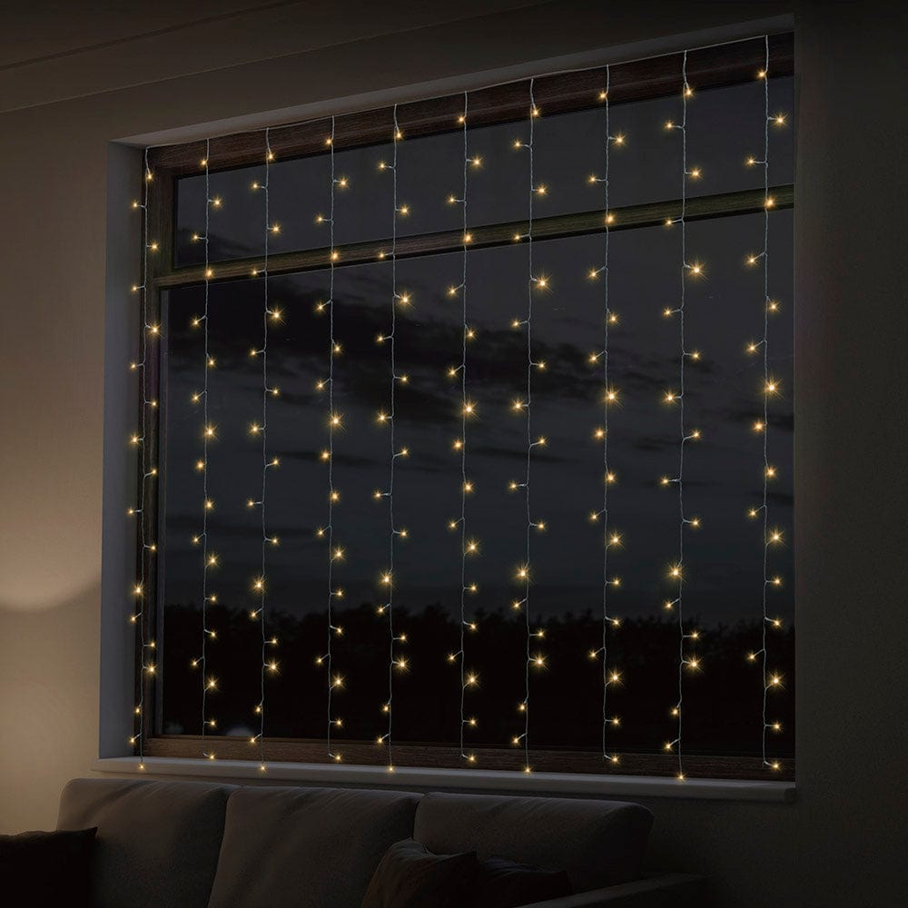 These Curtain Lights create a spectacular feature hung against walls, balconies and draped over entrance ways. Great to string from roofs, guttering and tree's. They also look stunning when hung in a window.