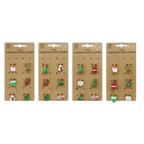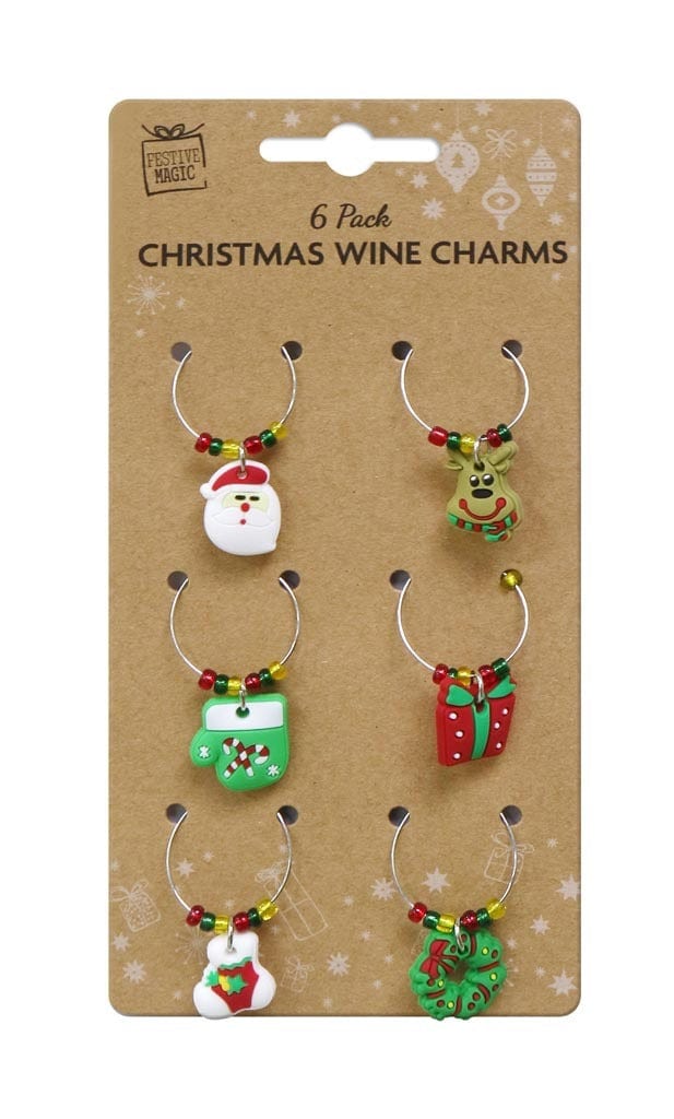 With their decorative designs and traditional Christmas symbols, each charm hooks easily around the stem or base of the wine glass, allowing guests to easily identify their drinks.