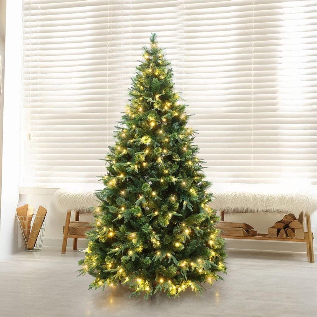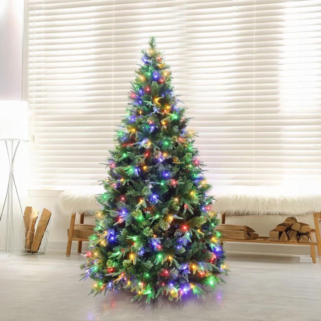A majestic centrepiece that brings both elegance and versatility to your festive celebrations. Perfect for spacious living rooms, grand foyers, corporate lobbies, or retail displays, this towering tree offers a lush, full silhouette that serves as an impressive backdrop for your holiday decorations. The dual-colour LED lights allow you to effortlessly switch between warm white and vibrant multi-colour settings, creating the perfect ambiance for any occasion. Whether adorned with traditional ornaments, modern accents, or a mix of both, this tree is sure to become the focal point of your Christmas festivities.