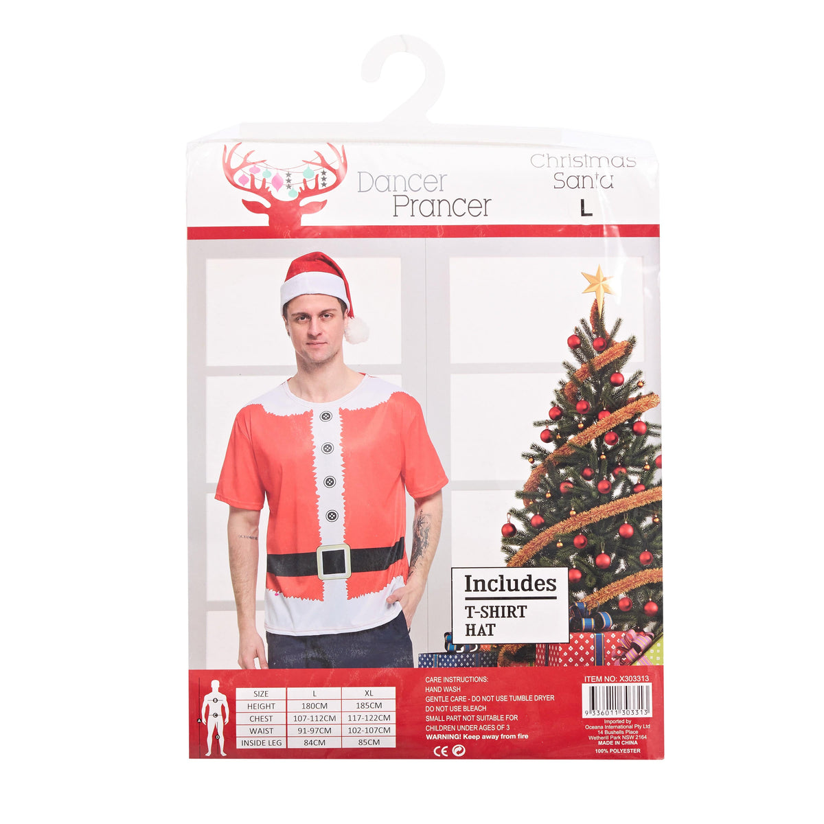 Step into the spotlight as the man of the moment and spread festive cheer with our Santa T-Shirt and Hat ensemble!