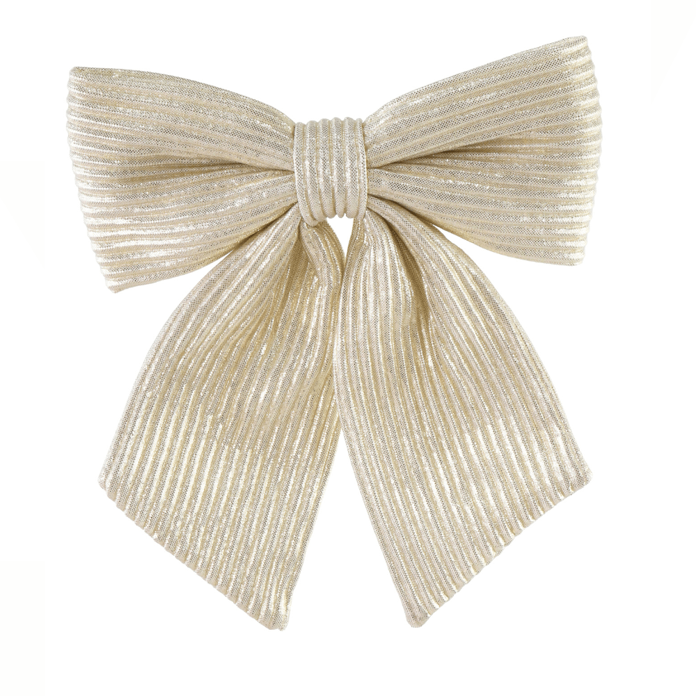 Turn up the festive glamour with the striking addition of our Pleated Metallic Bow. Designed to catch the light beautifully, this elegant decoration adds a sophisticated shimmer to your Christmas styling.