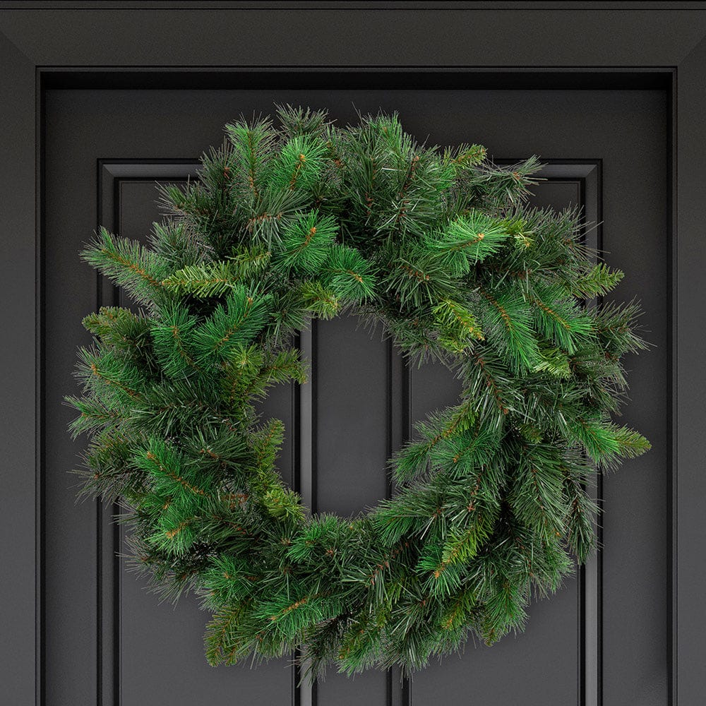 Our magnificent New Carolina Spruce Double Wreath, a show stopping holiday decoration that will make a statement, exudes elegance and captures the essence of the Christmas season.