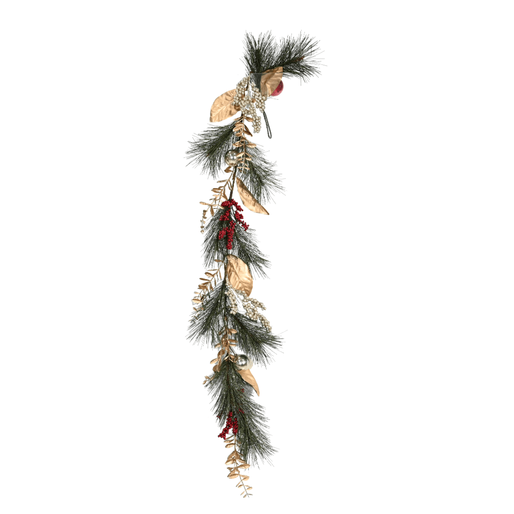 Step into a world of timeless elegance with our exquisite Garland Pine adorned with Gold Leaves, where the rustic charm of nature meets the opulence of the holiday season.