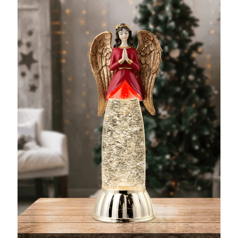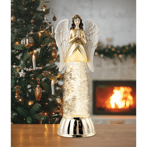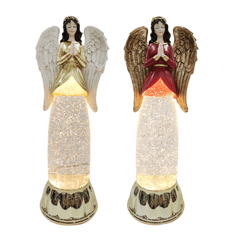 These exquisite Angels are more than just decorations; they're a symphony of festive magic waiting to grace your space. Display them proudly on your mantel or tabletop, where their radiant presence, shimmering glitter swirls, and angelic melodies will uplift the spirits of all who behold them. These Angels make for a stunning centerpiece during holiday gatherings, radiating warmth and joy amidst the festivities. Illuminate your entryway or foyer with these celestial beings to welcome guests with a celestial glow, setting the perfect tone for joyful celebrations and gatherings.
