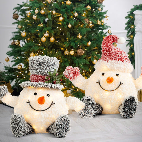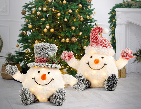 These charming snowmen feature bright LED lights that bring a cheerful glow to your space. Their playful design and festive lighting make them perfect for brightening your display this season.