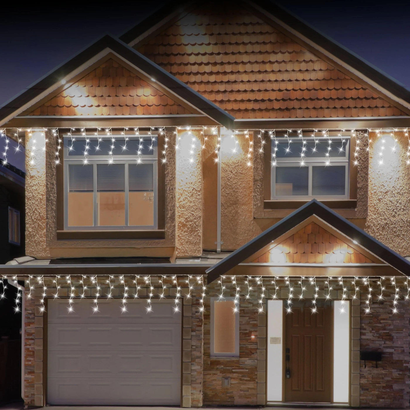 With their versatility, they can be creatively used in numerous ways. Hang them along roofs and guttering to create a mesmerizing cascade effect or drape them gracefully over balconies for a charming display. They also make a delightful addition to trees, hedges and shrubbery, adding a touch of enchantment to the festive ambiance.