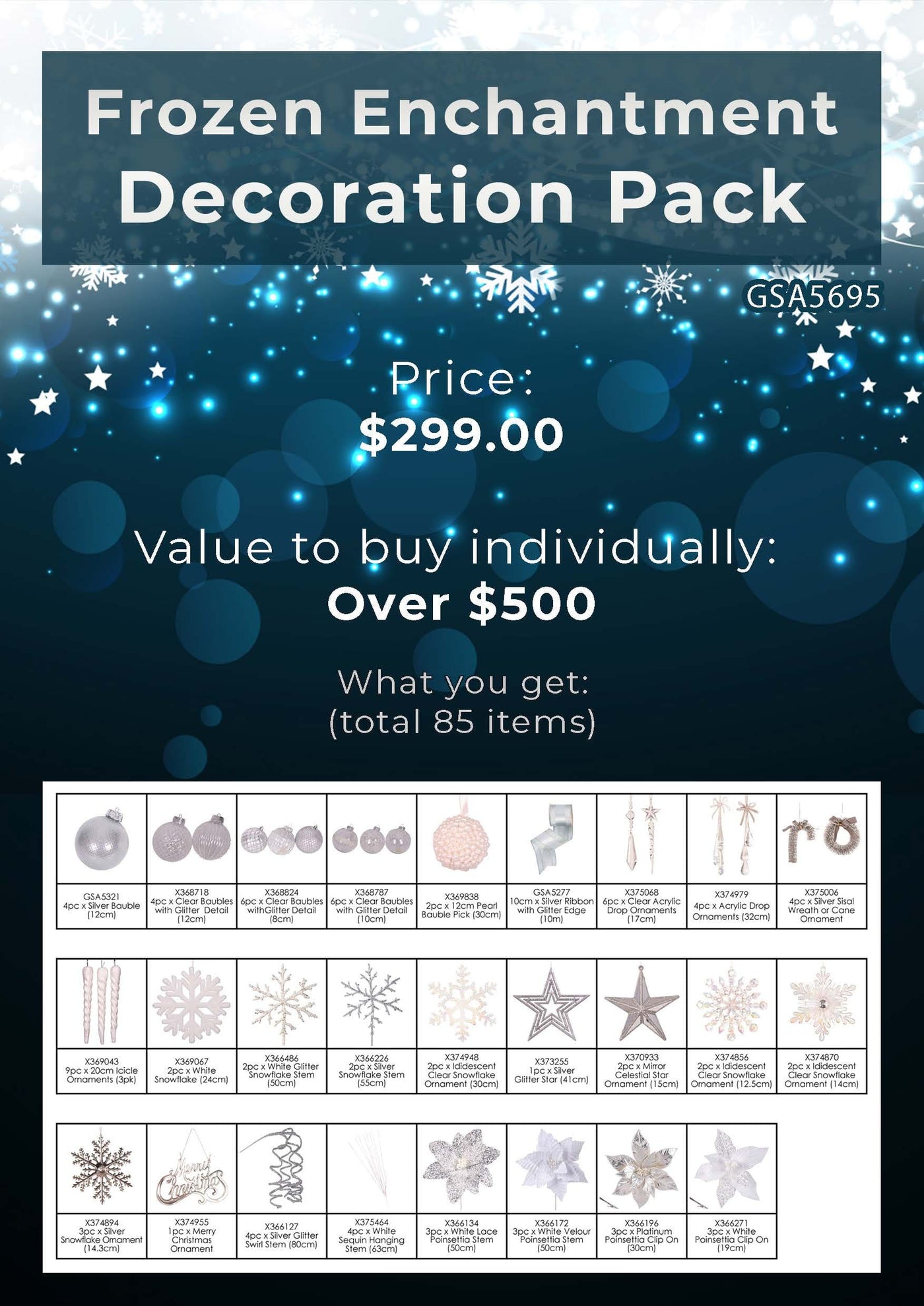 A harmonious blend of frosted tones, icy blues, and shimmering silvers, this curated collection captures the beauty of a snow-kissed Christmas.