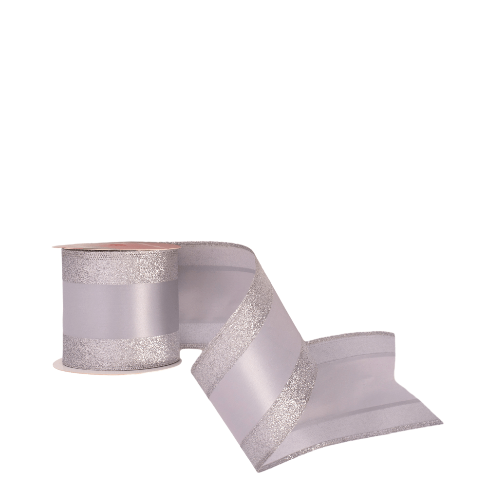 Wrap up the season with our luxurious Silver Ribbon with Glitter Edge. Let the beauty of this Ribbon enhance your festive decor.
