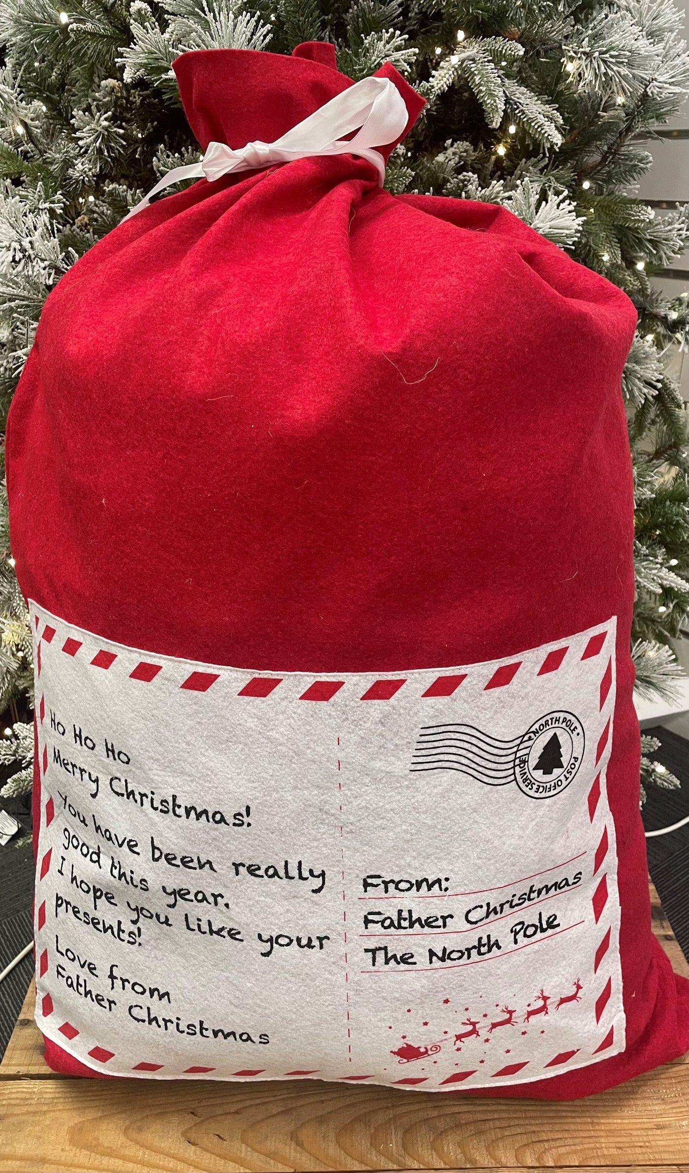 - Red Sack for Gifts with Post Card Note from Father Christmas