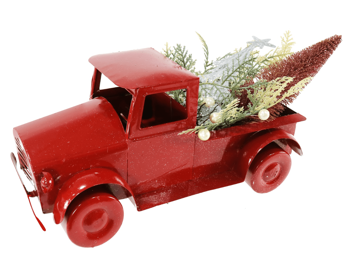 Bring a heartwarming and nostalgic vibe and get ready to haul in the joy of Christmas with our Metal Pick Up Car with Tree Decoration.