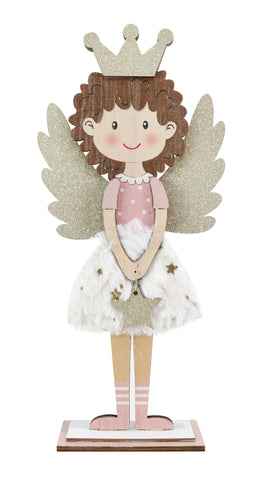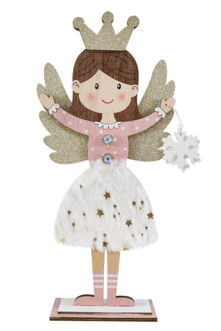 - Crafted From MDF with Glitter Accents and Plush Material Skirt