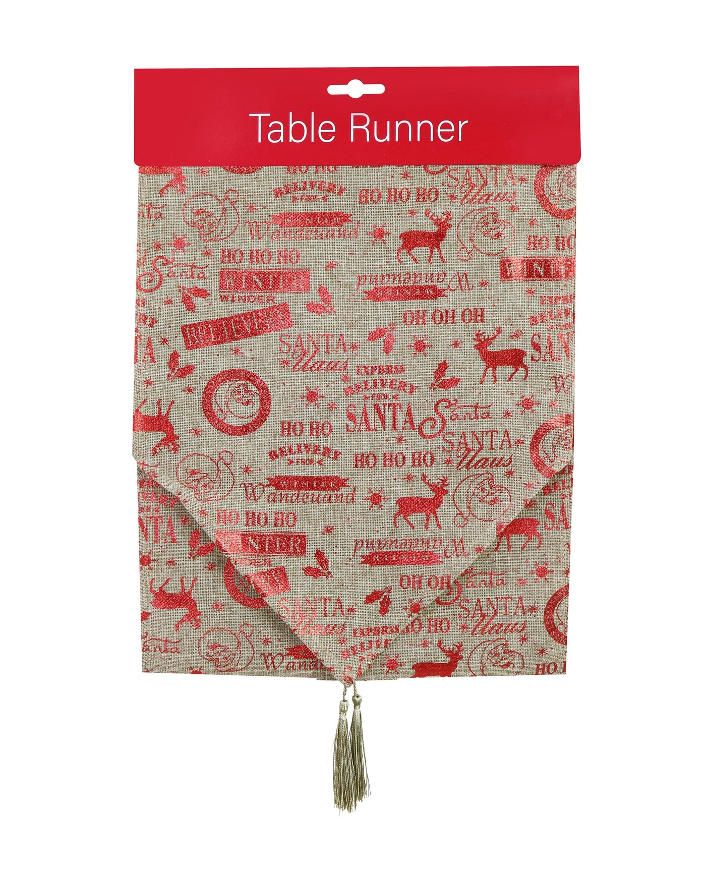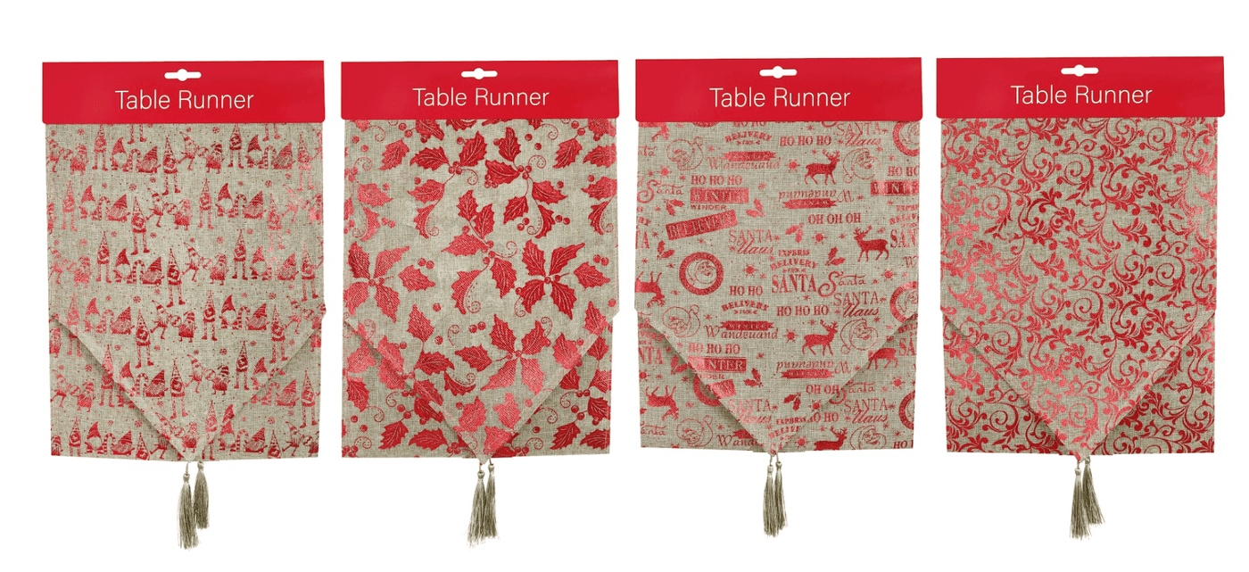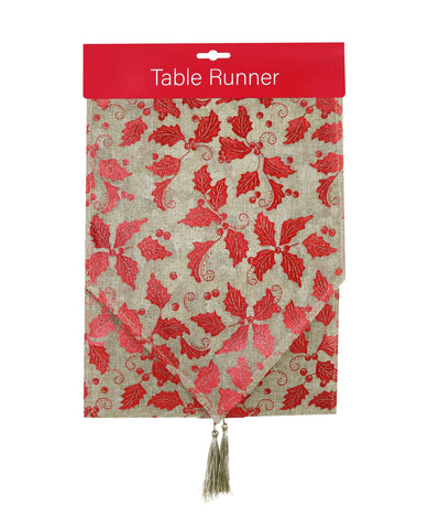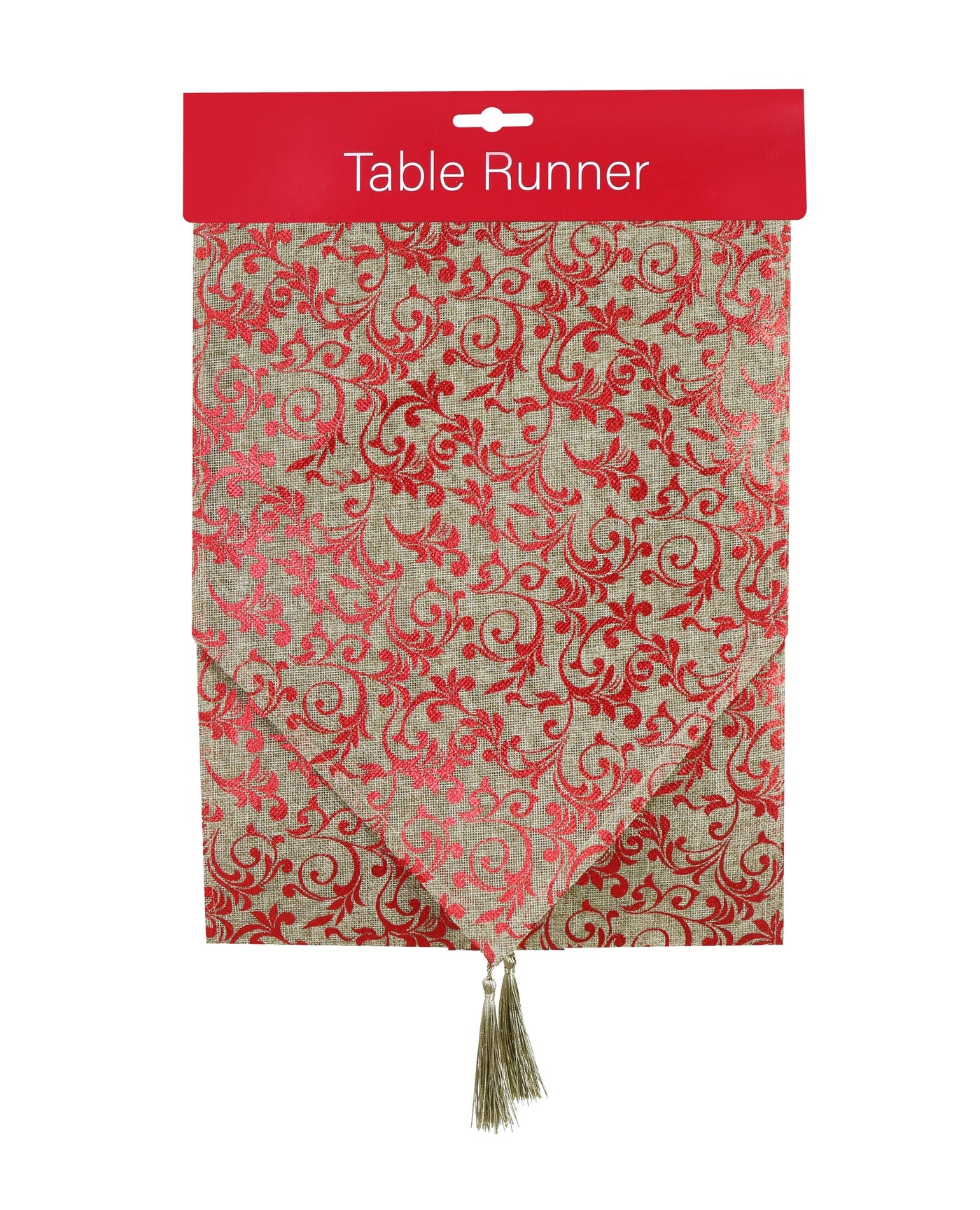 Dress your table in festive finery with our Red Foil Print Runner, a stylish addition that adds a touch of sophistication and holiday charm to your dining experience.
