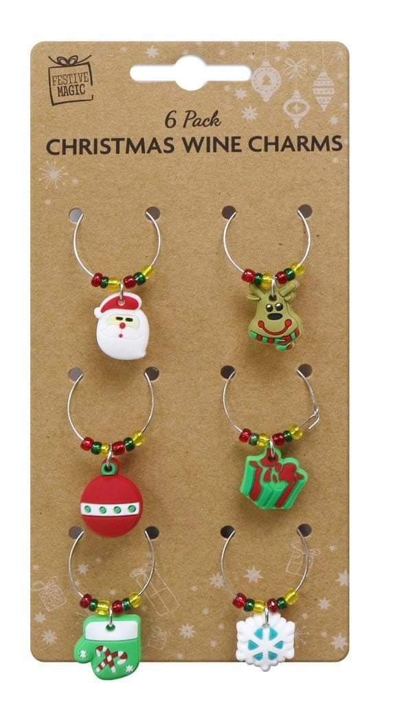 With their decorative designs and traditional Christmas symbols, each charm hooks easily around the stem or base of the wine glass, allowing guests to easily identify their drinks.