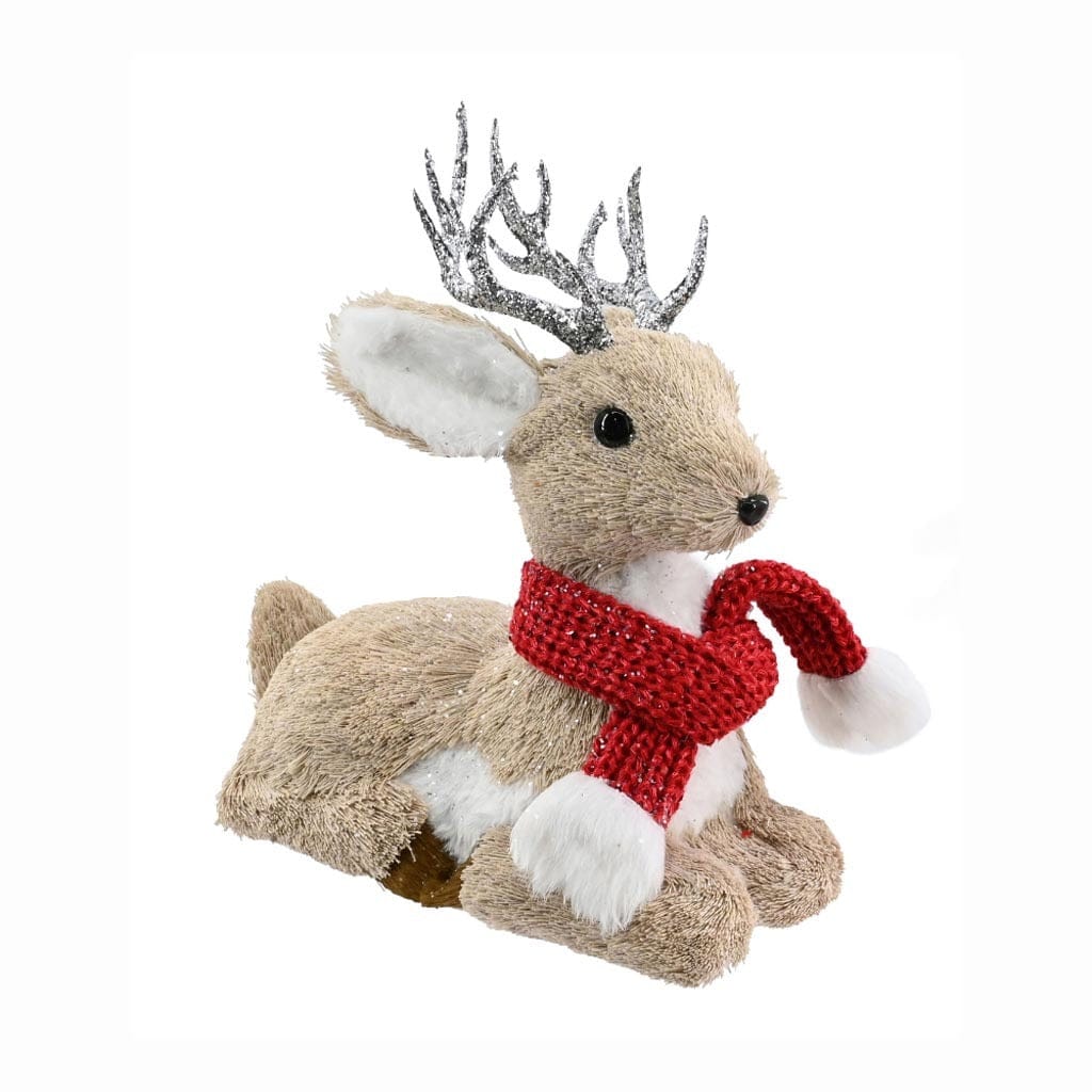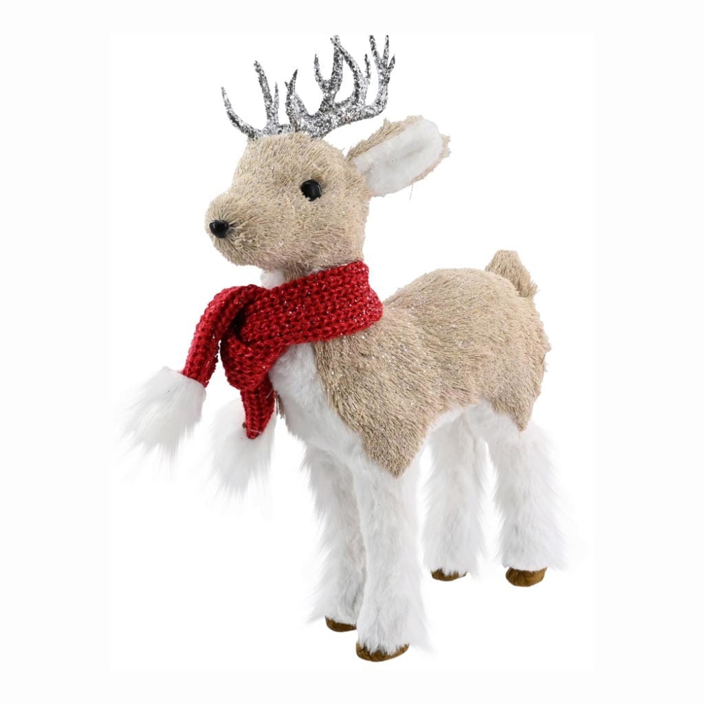 - Poly-Fur Reindeer with Glitter Antlers and Knitted Scarf with Plush Trim