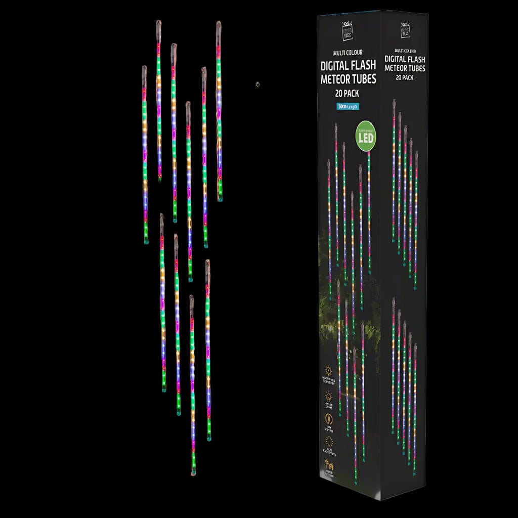 Transform your space into a festive wonderland! These multi-colour digital hanging tubes deliver a vibrant, dynamic light show with dazzling effects that mimic snowfall or meteor showers—bringing bold sparkle and festive energy to any display.