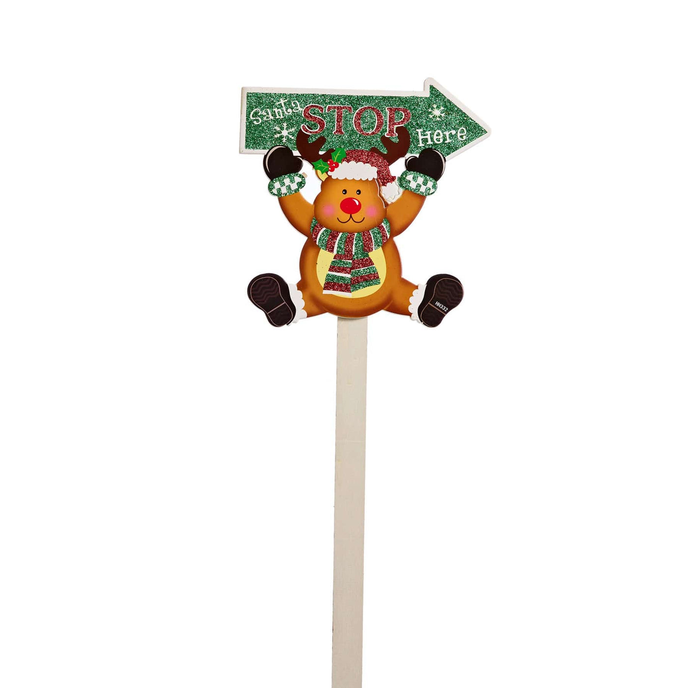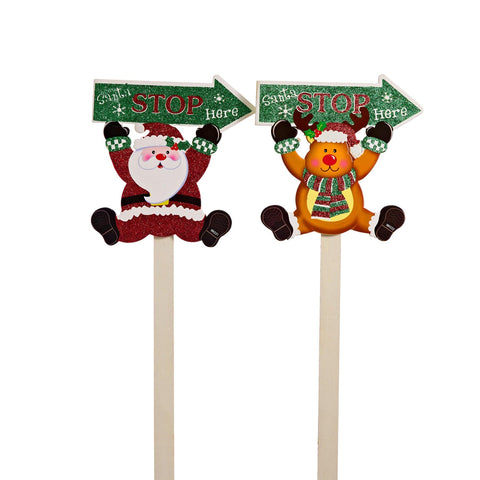 Santa Stops Here Garden Stake Christmas Decoration 2 Asst Sale