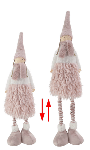 - Plush Standing Decoration with Knitted Accents, Candy Cane Striped Stockings, Scarf, and Hat Detail